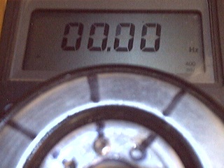 affichage de la fréquence f en Hz. Vrot. en t/s = f/4, Vrot. en t/min = f*15.